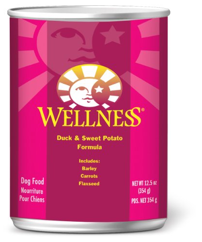 Water is an extremely important nutrient with respect to a dog's overall well-being. Formulated with the same whole food philosophy as our kibble -- complete and balanced nutrition using only the finest ingredients -- Wellness canned foods are an easy way to increase your dog's water intake. Wellness Duck & Sweet Potato Recipe is an excellent source of high quality protein and essential fatty acids, made with naturally preserved duck meat. Duck & Sweet Potato Recipe is made with high quality deboned duck has been specifically chosen for its lean quality and its powerful nutritional attributes. The sweet potatoes provide your dog with an excellent source of vitamins, minerals and beta-carotene. As a special treat or as part of your regular feeding, Wellness canned foods are yet another delicious way for your dog to eat healthy.